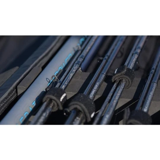 De IDentity Protect Rod & Reel Case is het ideale opberg- en transportsysteem voor opgetuigde feeder en matchhengels. De harde ABS base met zachte bedekking aan de binnenkant, biedt volledige bescherming aan hengels en molens. Verbogen beugels of hengelogen behoren voortaan tot het verleden. Doordat de molens naar beneden in de case geplaatst worden, kan de lijn onmogelijk tussen de rits terecht komen. Zowel, de bodem als het deksel zijn voorzien van 2 EVA strips, waartussen de hengels gefixeerd worden en ze dus ook rechtop staand in positie blijven. Door te kiezen voor een groot vak , i.p.v. opdelingen, wordt de ruimte maximaal benut. Door de molen kruiselings te positioneren, passen meer hengels. Ook is er een uitsparing gemaakt om een schepnetsteel of feeder arm te plaatsen. In het EVA foam zitten tevens uitsparingen om tubes met reserve toppen in te plaatsen. De IDentity Protect Rod & Reel Case is voorzien van luxe handgreep en schouderriem, die zowel voor links dragend als rechts dragend geplaatst kan worden.