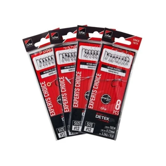 De Detek Method Pellet Band Rigs zijn speciaal ontworpen voor het vissen met een method feeder. Deze onderlijnen zijn 10cm lang en zijn zo kort genoeg om het aas dicht bij de feeder te houden, maar toch lang genoeg om een hoge hook up rate te garanderen. Ideaal voor verschillende formaten pellets. Gemaakt met zeer hoge kwaliteit en ultrascherpe haken. Dam Detek Method Pellet Band Rig, 8 stuks!