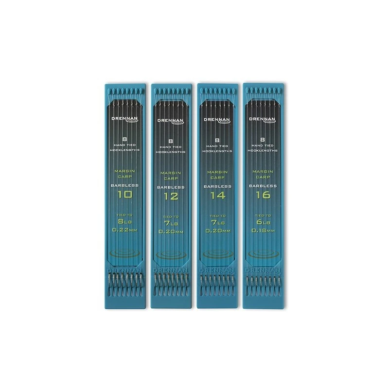 Barbless Margin Carp Haken hebben een extreem sterke haak. Deze haken op nylon hebben een lange naaldpunt die licht gebogen is met de uiterste punt naar binnen gedraaid om een echt goede veilige haakgreep te bieden. Ideaal om te vissen op karper.