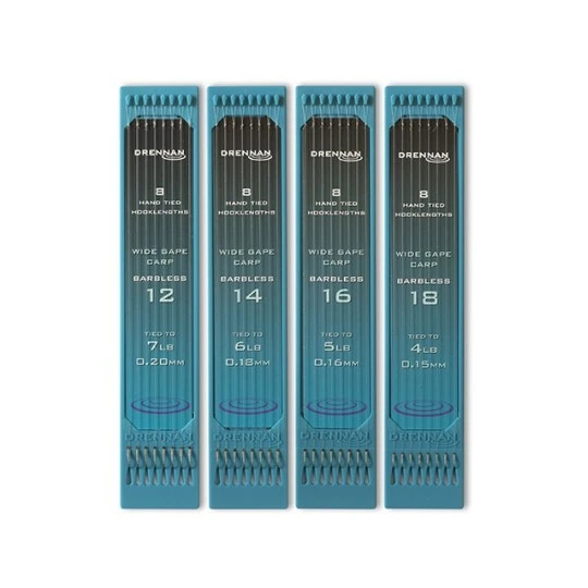 De Drennan Hookplate 6” Carp zijn kant-en-klare vaste hengel onderlijnen met een lengte van 15cm.en speciaal ontwikkeld voor het vissen op karper Dit haakmodel heeft een extra wijde haakbocht wat het inhaken van vis ten goede komt. Door deze haakvorm zit het haakaas perfect recht op de haak, door de korte haaksteel kan de haak eenvoudig worden verborgen in het haakaas. De extra ruime haakbocht maakt deze haak ideaal voor alle soorten groot en zacht haakaas. De weerhaakloze haak heeft een bronzen kleur en een halflange steel. De onderlijnen zijn gemonteerd op een zogenaamde “hookplate system”, dit display systeem houdt de onderlijk en lussen in één rechte lijn. Hierdoor worden kinken en beschadigingen van de nylon lijn voorkomen. Door dit systeem blijft elke onderlijn altijd om een rechte lijn onder lichte spanning opgeborgen. Elke onderlijn is zeer nauwkeurig geknoopt en voorzien van een zeer precieze gelegde bledknoop.