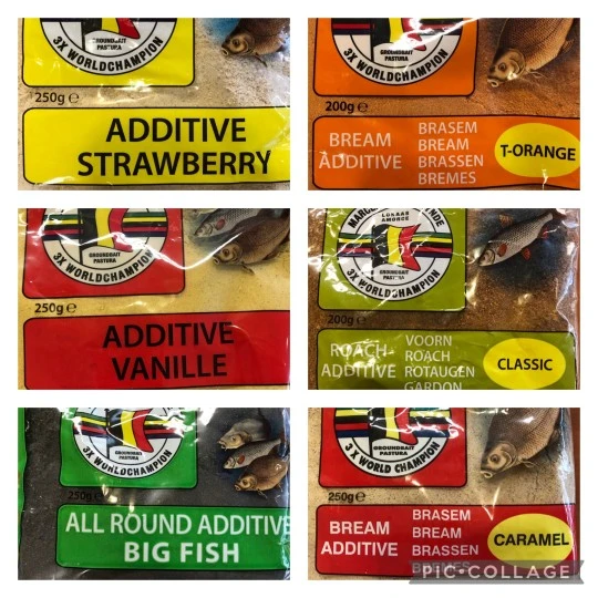 Poeder-additieven zijn de meest gebruikte toevoegingen aan lokaas. Ze zijn in allerlei soorten en types verkrijgbaar.